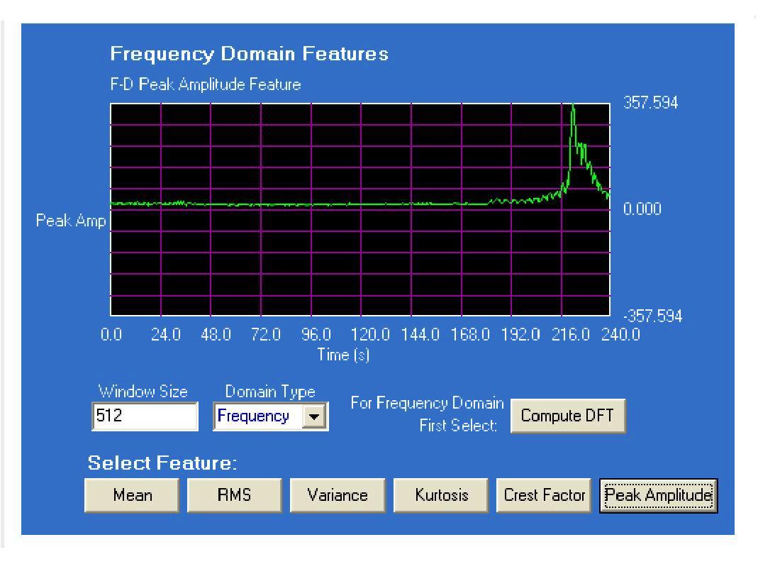 kurtosis, crest factor, and peak amplitude for a certain window